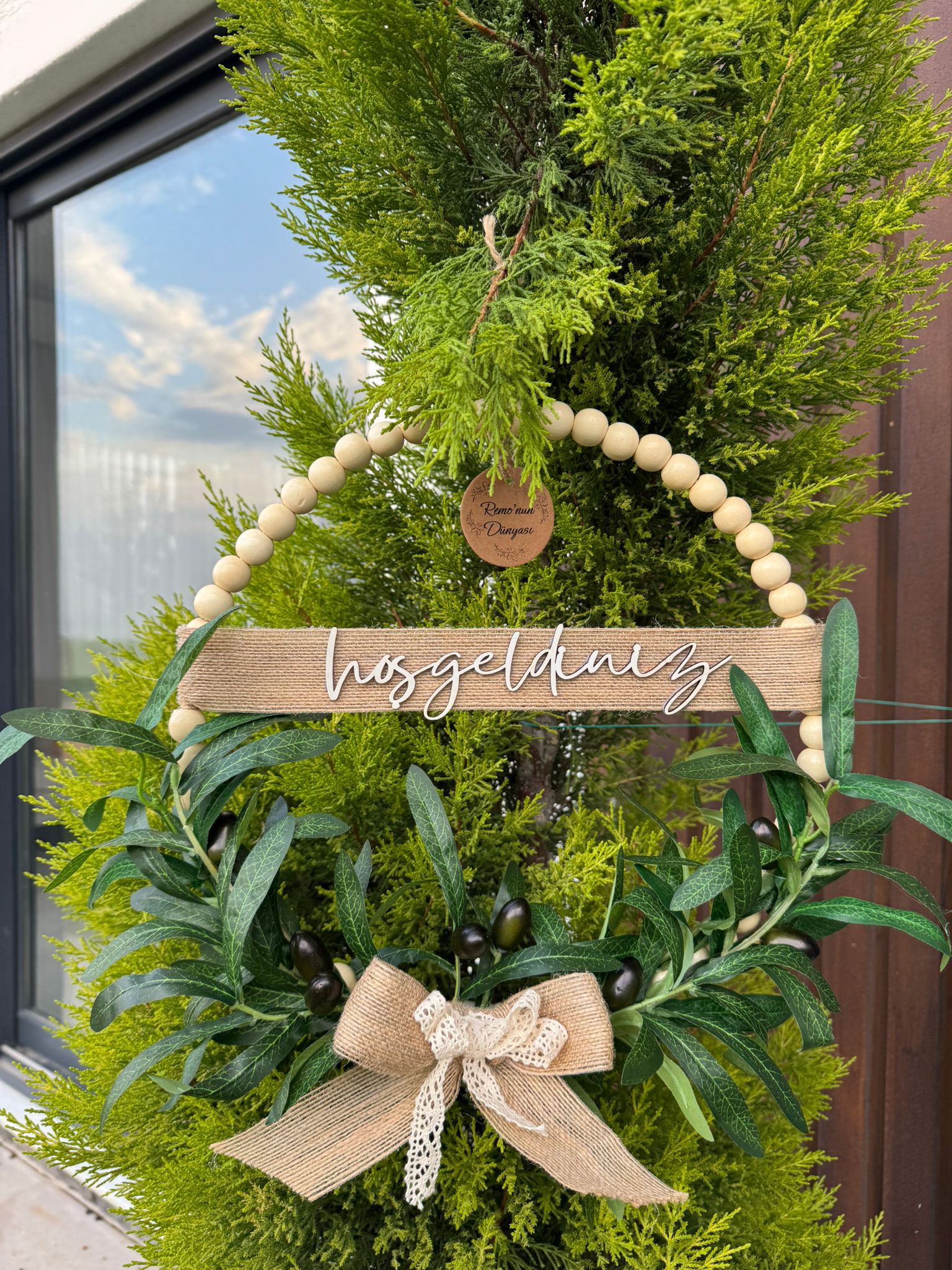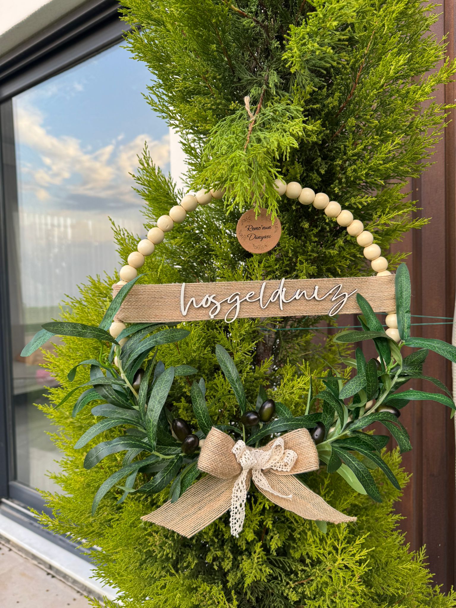 Ahşap Boncuklu Zeytin Dalı Kapı Süsü