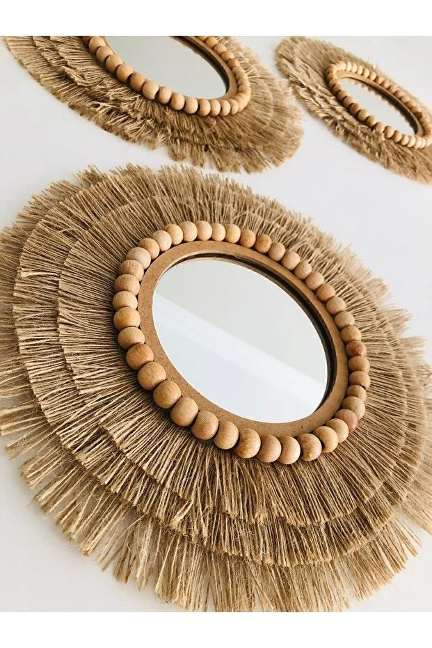 Remo Design Tasarım Hasır Jüt Boncuklu Ayna ( 42 cm )